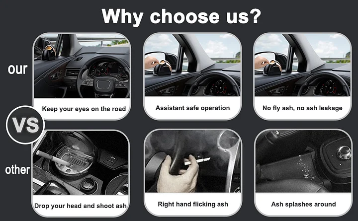 Ova pepeljara izrađena je od izdržljivog PC+ABS kućišta i uklonjive unutarnje cijevi od aluminijske legure za jednostavno uklanjanje pepela i opušaka. Smješten na vozačevim lijevim vratima, lako je dostupan na prvi pogled za veću sigurnost.