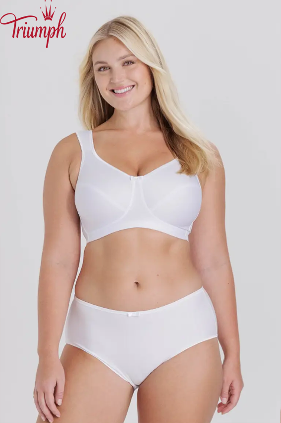 Grudnjak bez žica s košaricom i prednjim dijelom izrađenim od ekološke Tencel™ mješavine liocelnih vlakana. Nepodstavljena, nepodstavljena puna košarica bez žica. Daje poprsju okrugli oblik. Materijal je neelastičan, lagan i prozračan, što daje osjećaj hlađenja. Ravni šavovi košarica izgledaju diskretno ispod odjeće. Elegantan završetak sa sjajnim obrubom duž dekoltea. Široke, krute naramenice, podesive na leđima. Elastična leđa u obliku slova U s podesivim kopčanjem na kuku i oko. Tencel™ liocelno vlakno dobiva se na ekološki prihvatljiv način od drvene pulpe iz održivih šuma i proizvodi se u zatvorenom sustavu bez emisija i zagađenja.